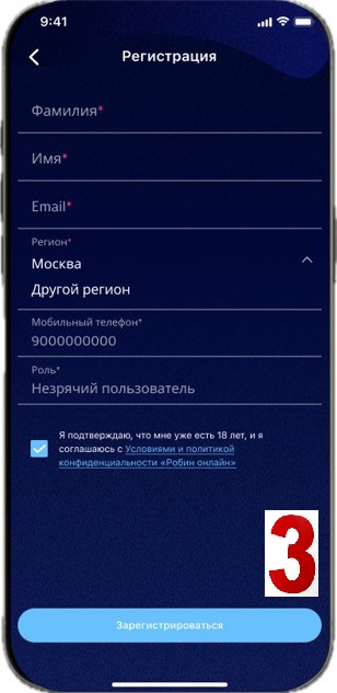 Далее необходимо заполнить короткую анкету из четырех пунктов. В конце поставьте галочку, подтверждая, что вам более 18 лет и вы согласны с политикой конфиденциальности.